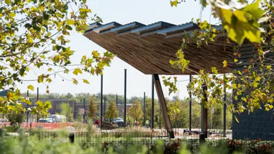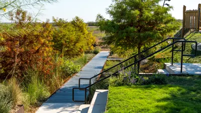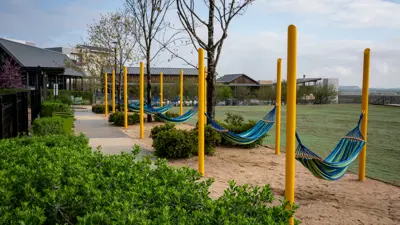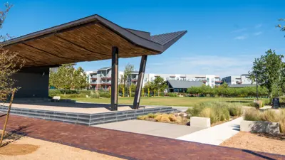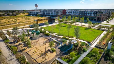 La Verde Park is a 1.6-acre park located in the Brick and Mortar District. This park includes a splash pad, volleyball court, dog park, and all abilities play ground. One of the main attractions at La Verde Park is the performance pavilion and event lawn that can hold gatherings of up to 2,200 people. Additional amenities include interactive water features, a world-class all abilities playground, and low impact development features. This park is part of the first phase of the Brick and Mortar District, a 138-acre pedestrian-oriented, mixed use development.