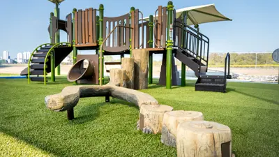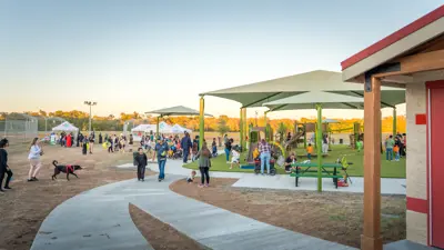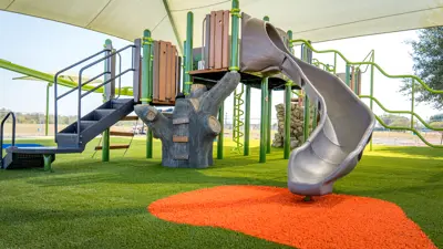 Waterleaf Park is a 92-acre park which sits on Abundance Lane in the back of the Waterleaf Community. The park provides three softball fields, natural areas and open space, and soccer goals to meet the community’s recreation needs. With over 30 acres of natural space, this park offers an immersive nature experience. Additional amenities include the shaded play structure and a dirt loop trail encircling the main features of the park, areas for hiking and biking, and a great trail for early morning and evening dog walks.